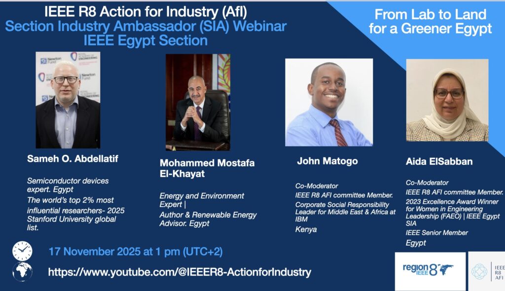 Welcome to IEEE R8 AfI Webinar Series co-organized by Section Industry Ambassadors !